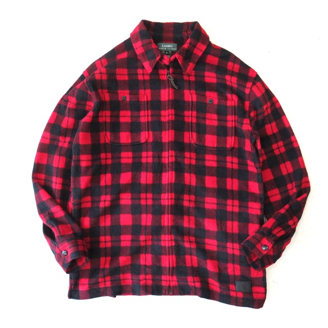 LAUREN Fleece Check Full Zip Jacket【WOMEN`S M】(実寸メンズL)