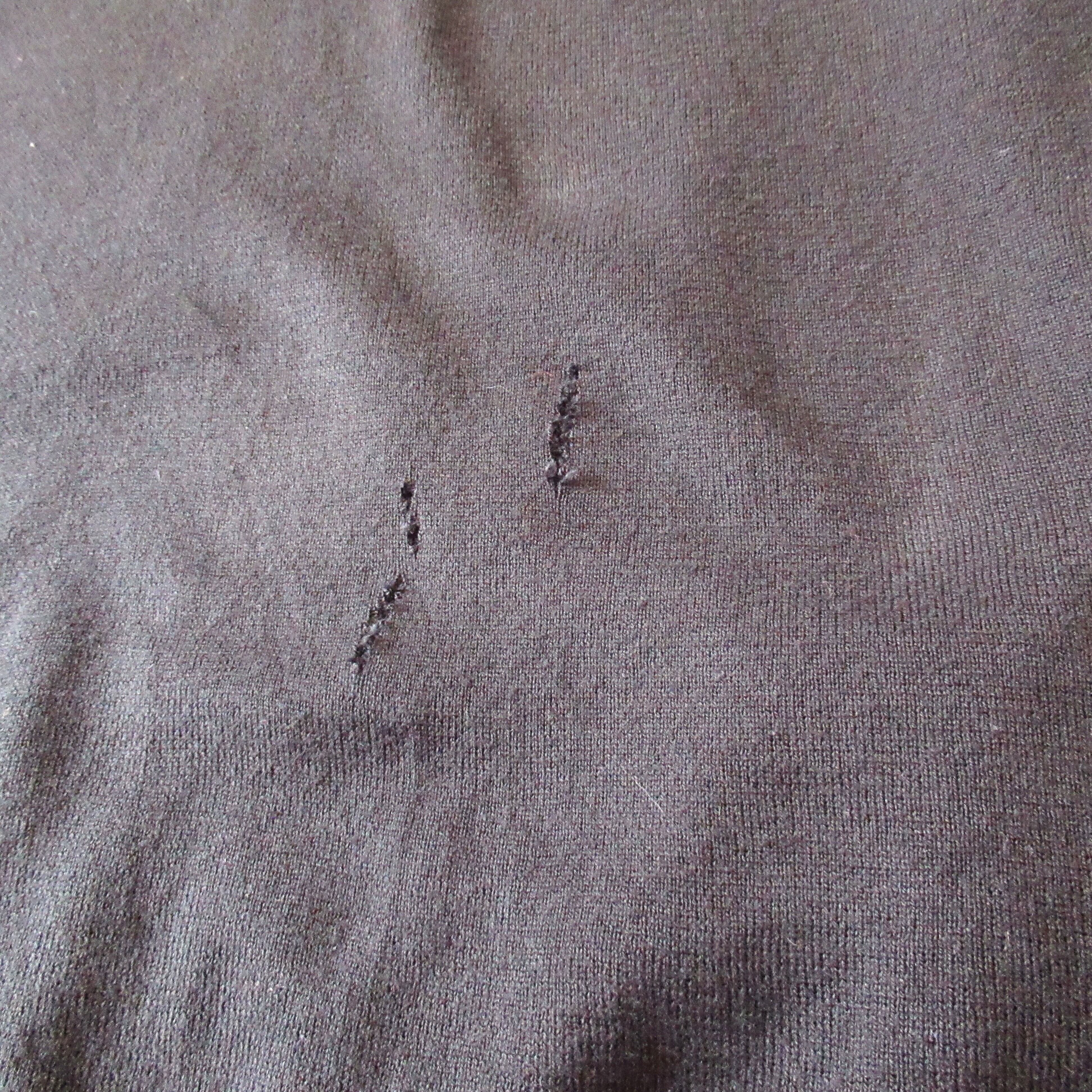 フロント ネックラインに擦れと裂け。