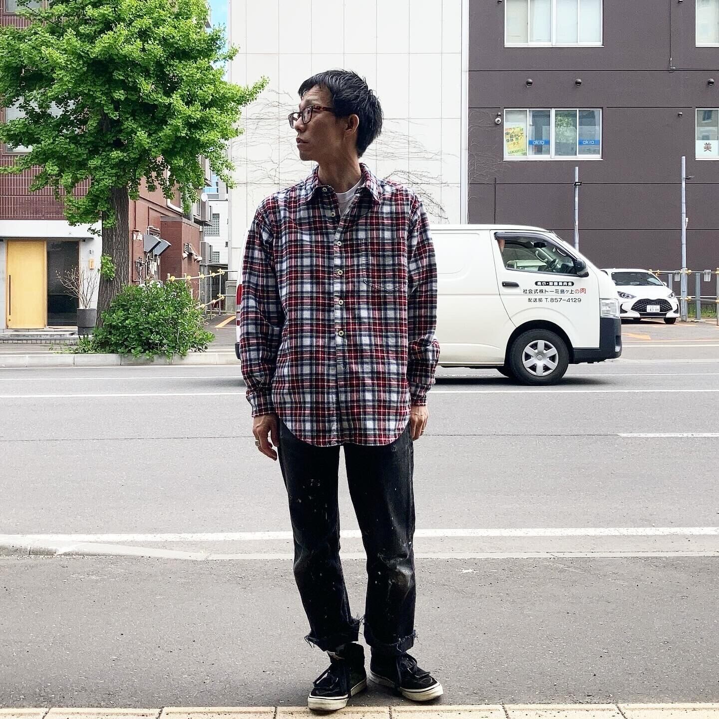 70年代のSEARSにありそうなヘビネルチェックパターンを90年代に復刻したような一枚。