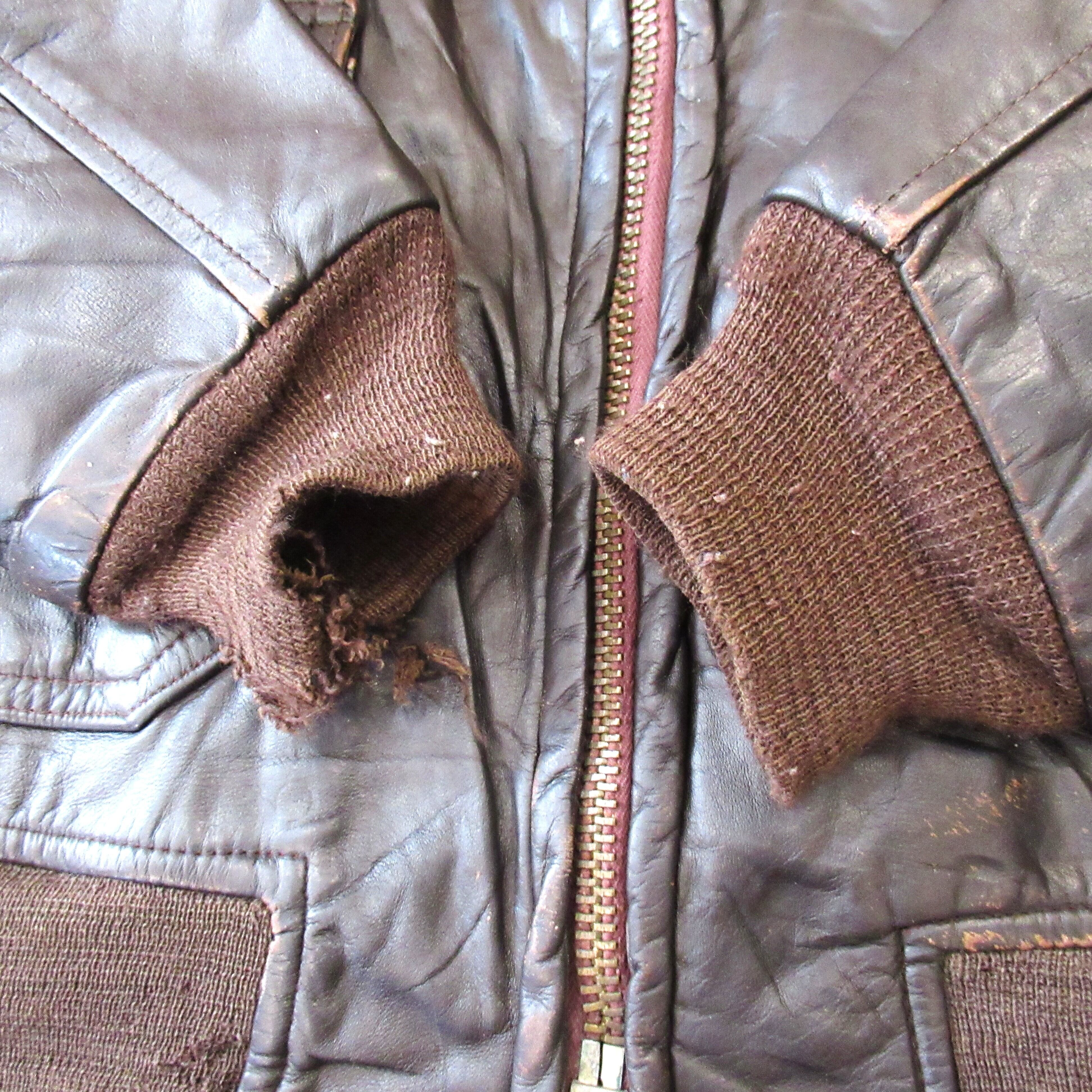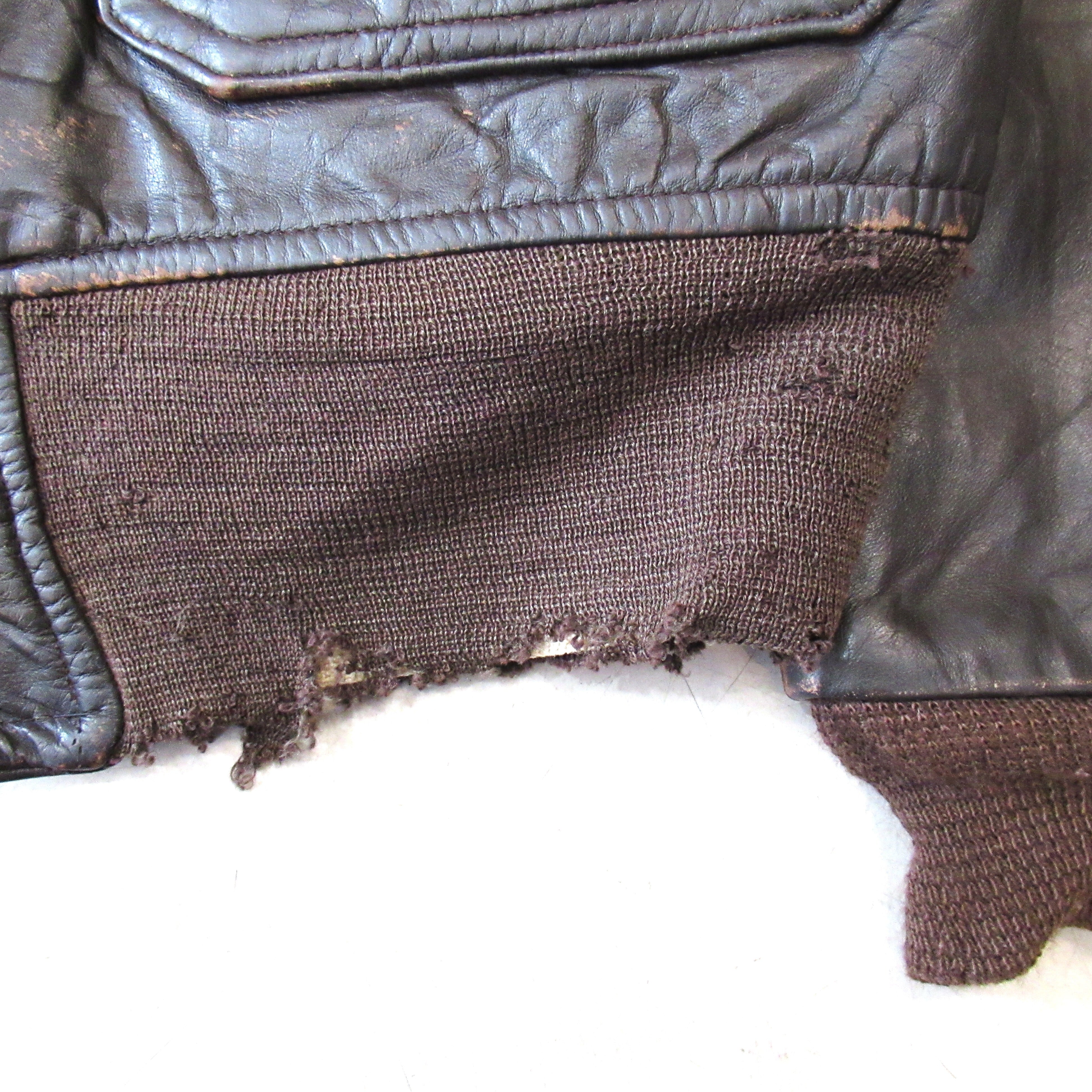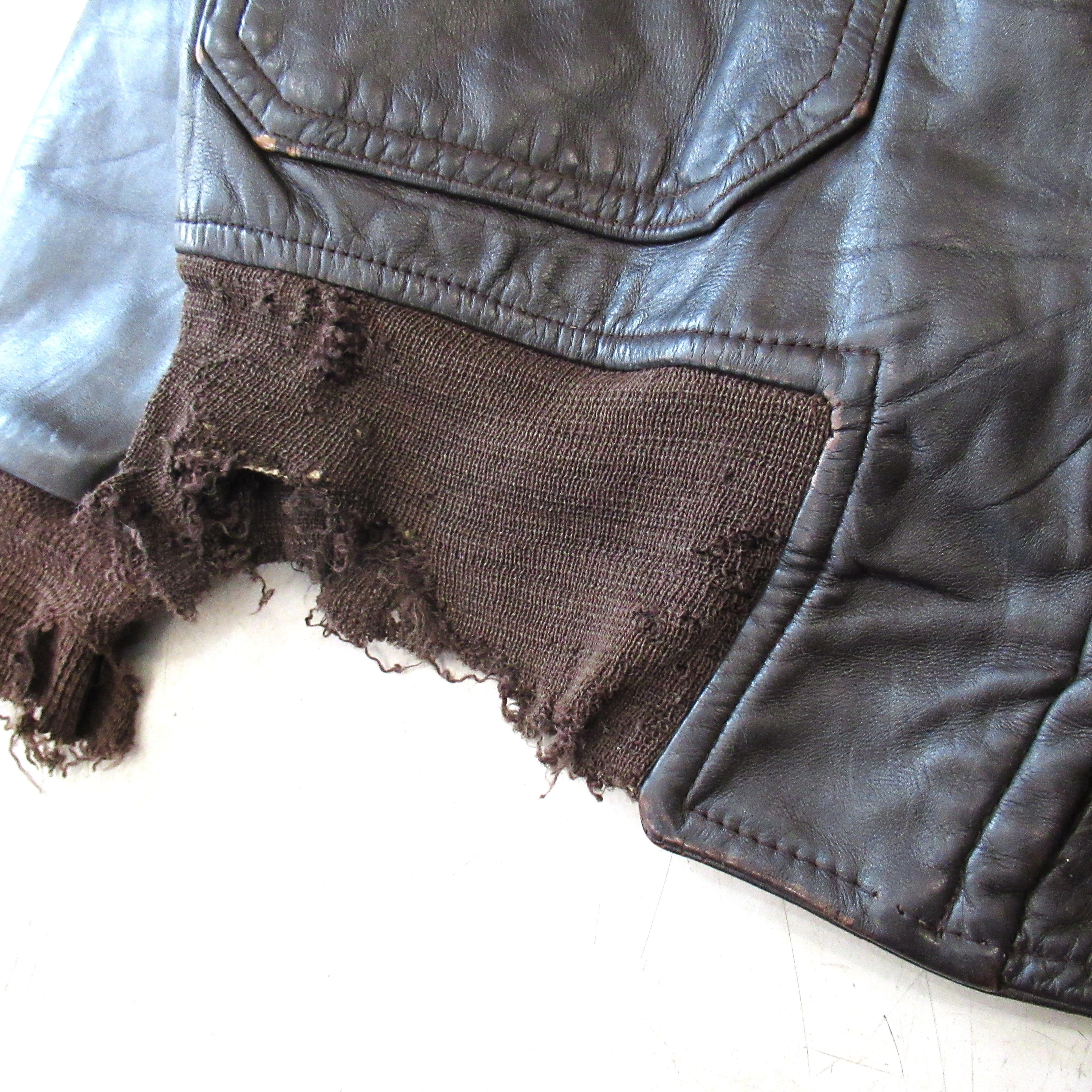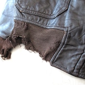 袖、腰リブが破れているジャンクコンディションであるもののムートンの抜けやレザー本体には致命的なダメージはありません。