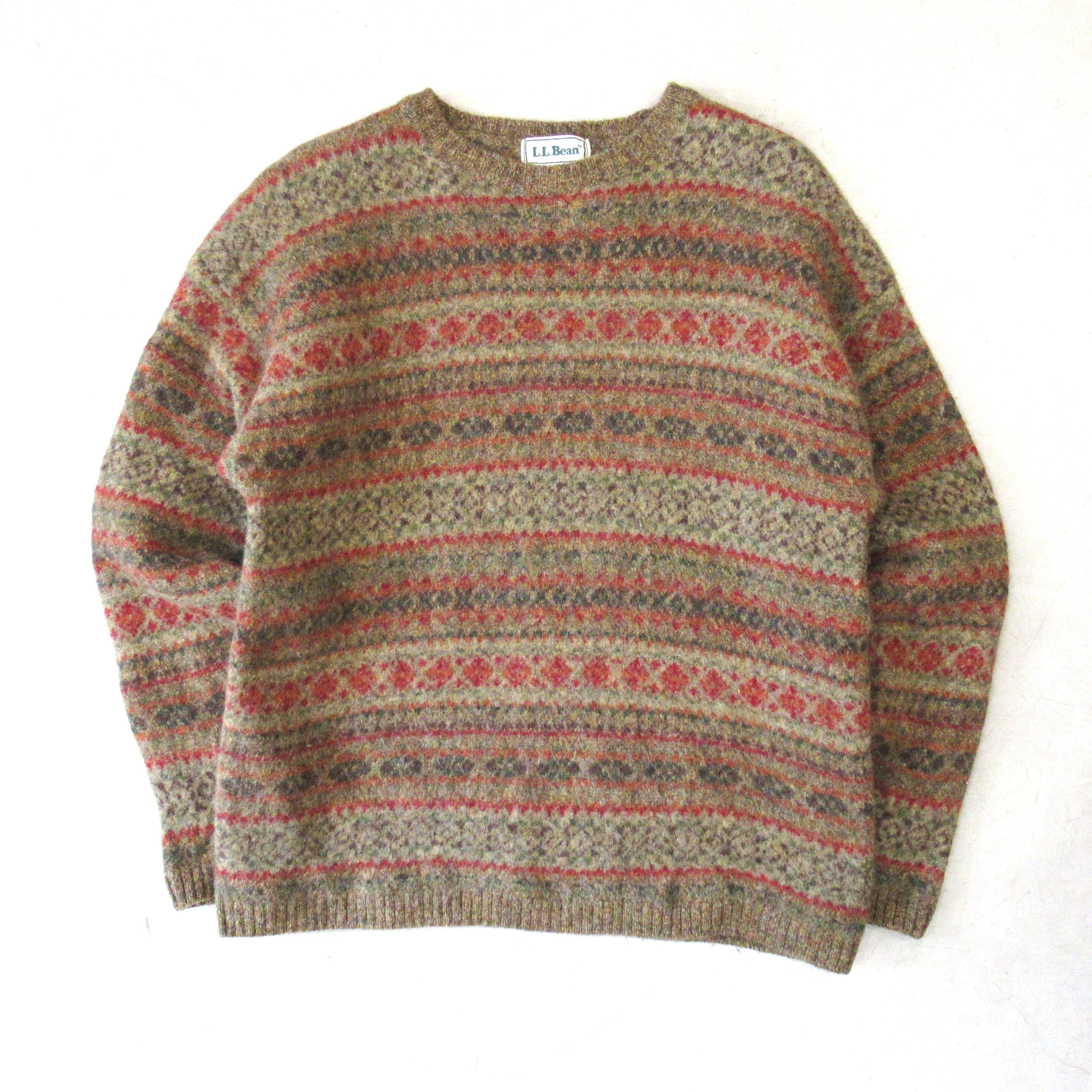 80S L.L.Bean Fairisle Pattern Wool Sweater【XL】