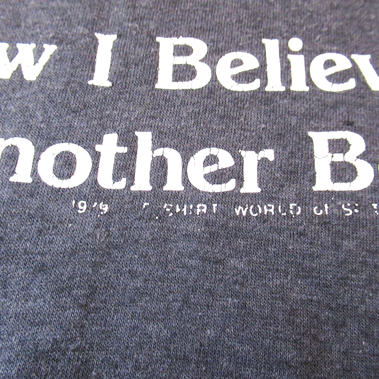 CONDITION : 着用感があり、プリントに軽度の割れ・ところどころ毛玉と細かい白っぽい汚れがあります。