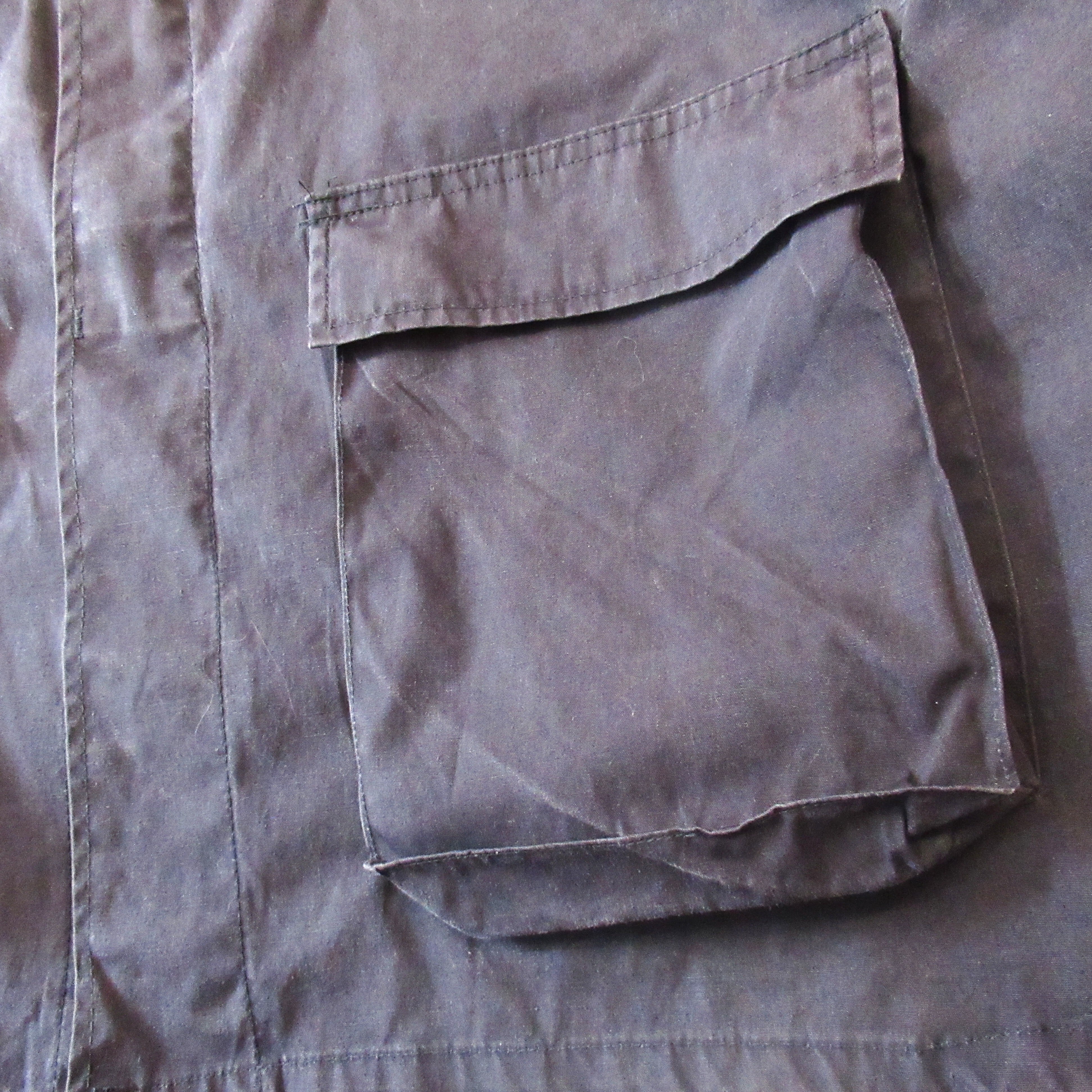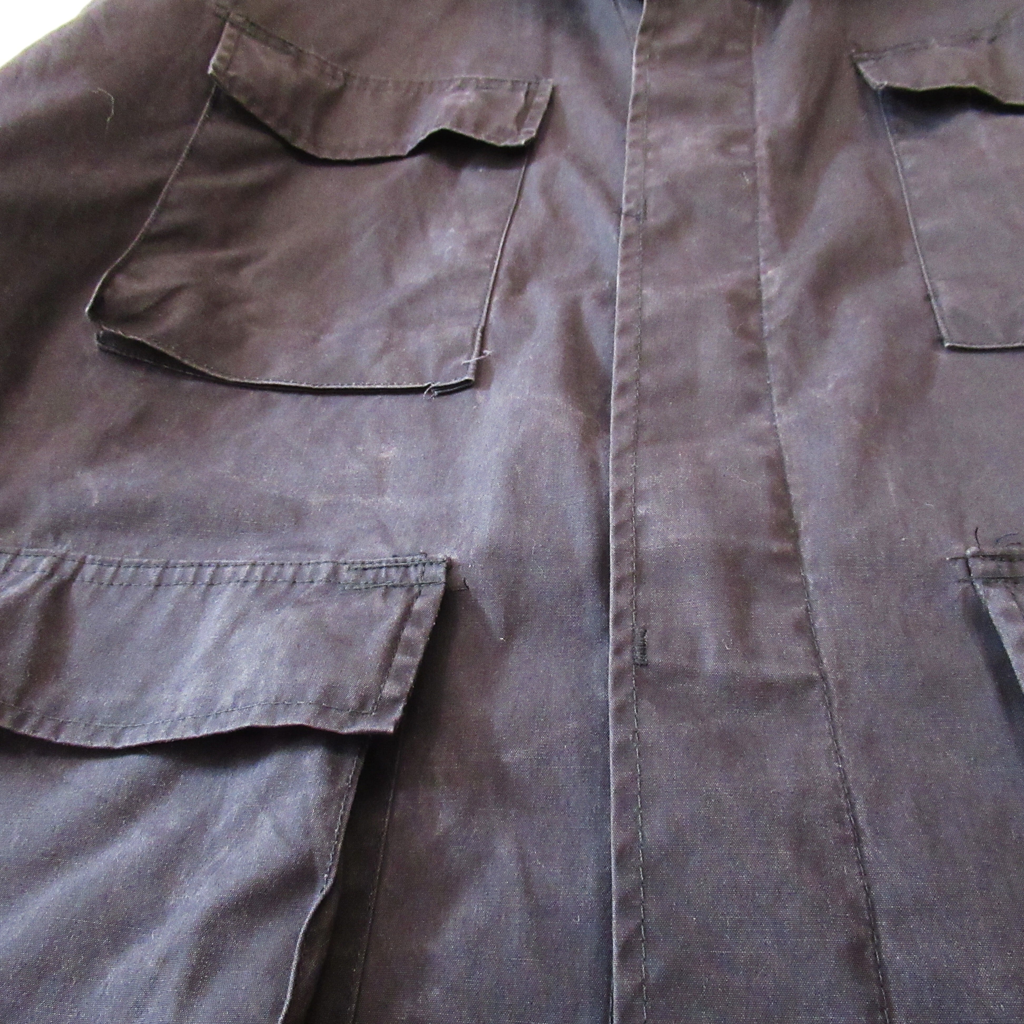全体的に白い線が入るバブアーのオイル抜けたみたいなコットンです。