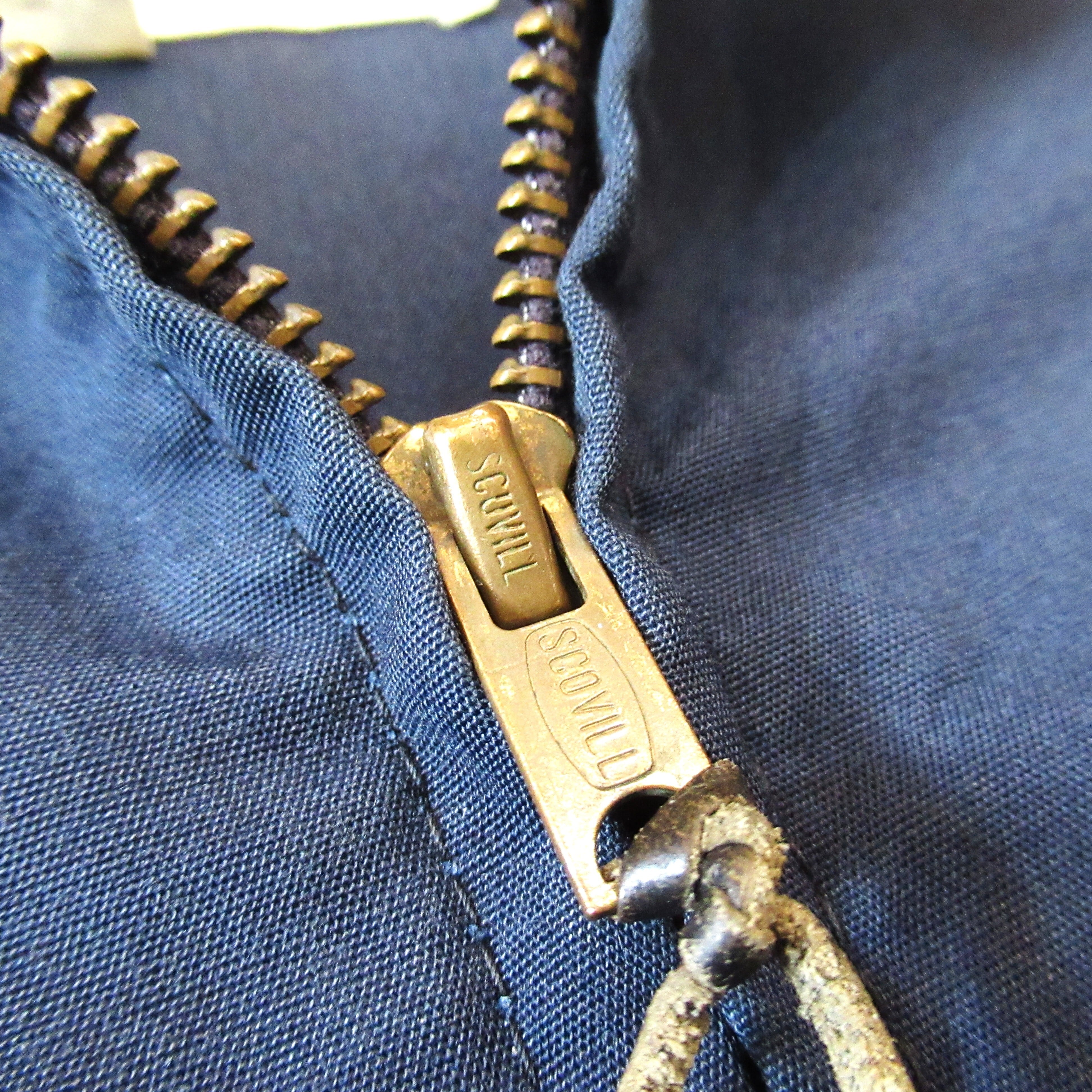 ジップは真鍮SCOVILLでレザーの引き手付き。