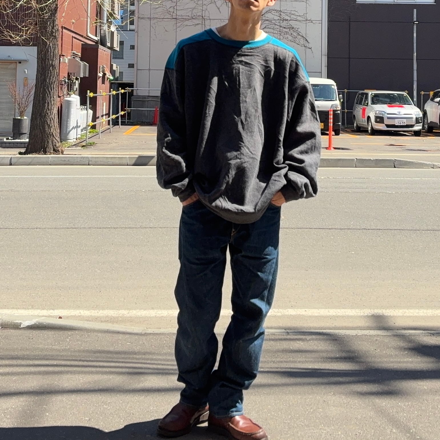 同じくらいの年代で腰で切り替え・袖の一部切り替えなんかのスウェットはありますが、王道なフットボールタイプはまったく見かけません。