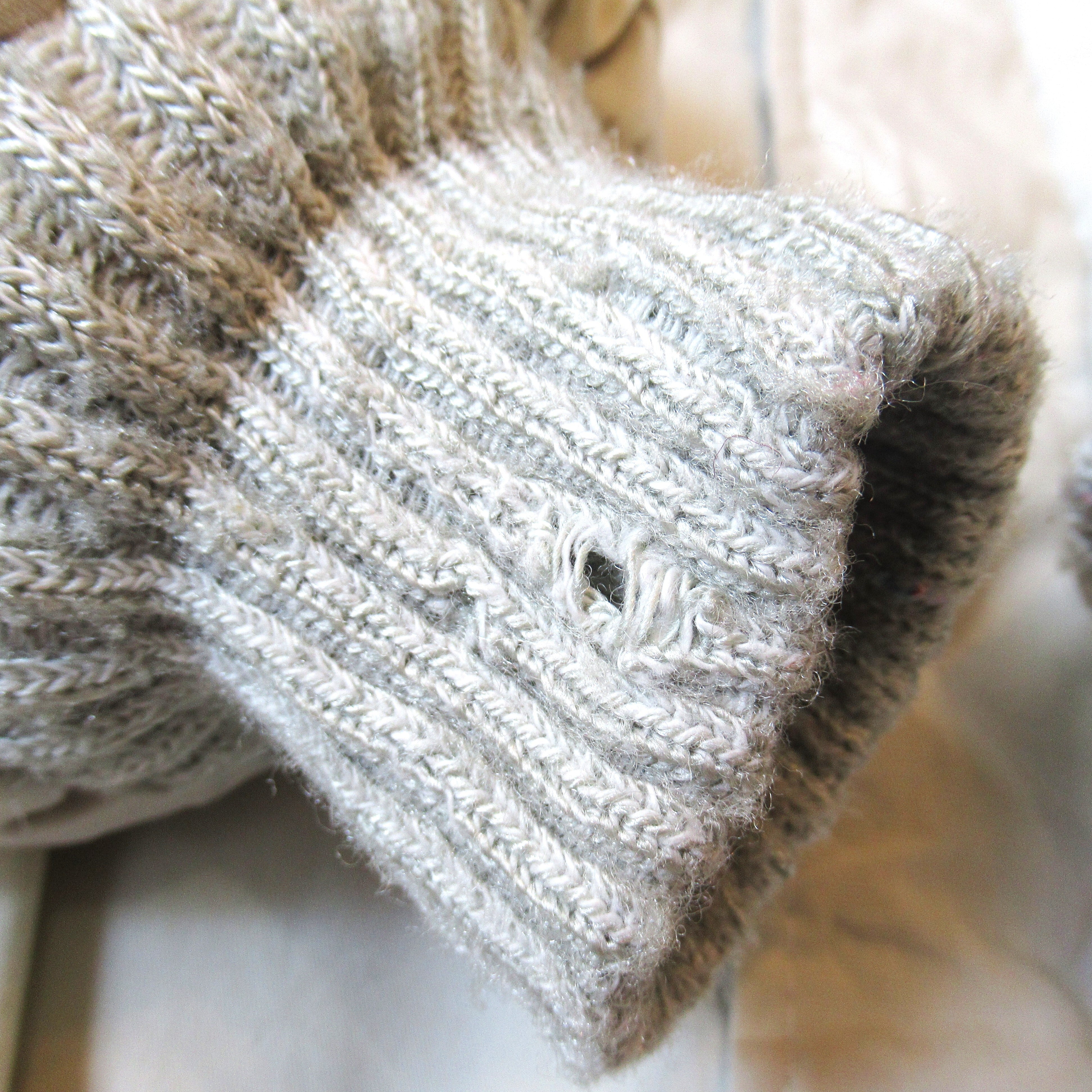 右袖リブに小さな裂け。